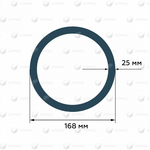 Бесшовная стальная труба круглого сечения наружным диаметром 168 мм и толщиной стенки 25 мм произведена из качественной углеродистой стали марки 20.